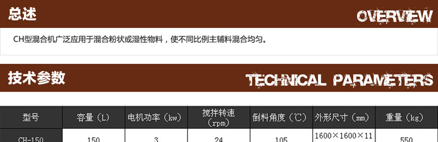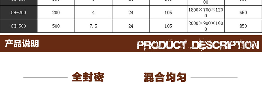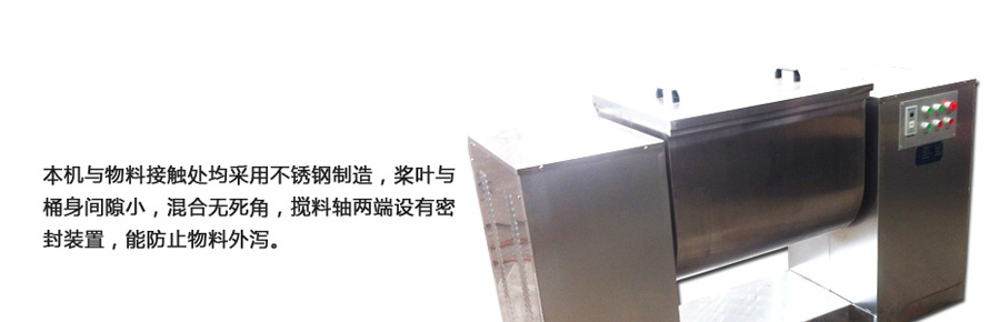 用于混合粉状或湿性物料,使不同比例主辅料混合均匀。本机与物料接触处均采用不锈钢制造,桨叶与筒身间隙小,混合无死角,搅料轴两端设有密封装置,能防止物料外泄,广泛适用于制药、化工、食品等行业。